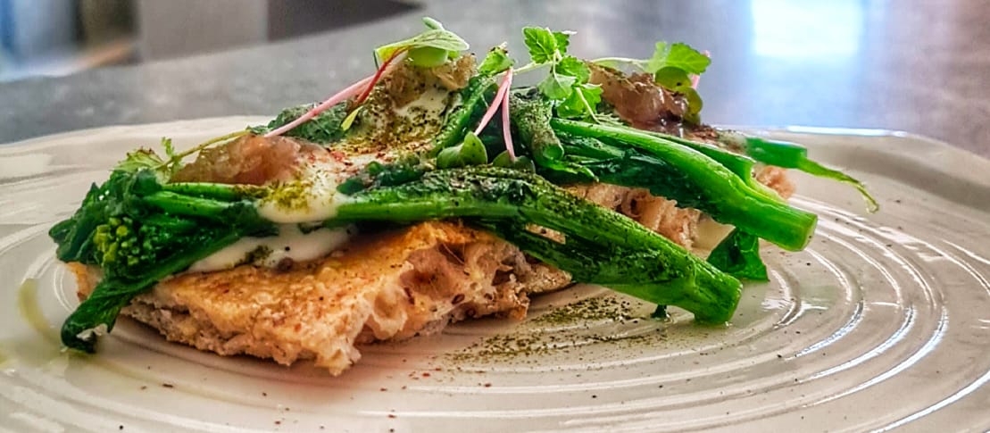 Fondamentale anche la fedeltà ai principi della sostenibilità, tema caro a Chic con Chic Respect, l’associazione alla quale entrambi i professionisti appartengono: “Non buttiamo nulla e valorizziamo la parte esterna della cipolla realizziamo una polvere che addizioniamo ai friarielli aggiungendo anche lattuga di mare, di nuovo a richiamare le nostre origini.” Sul tema della sostenibilità anche Paolo ricorda come si tratti di un termine che definisce qualcosa che accadeva già nel passato: “è la tradizione a ricordarci i concetti di sostenibilità e rispetto per l’ambiente. C’era già nella cultura contadina prima del nome nelle ricette di una volta dove nulla andava sprecato.